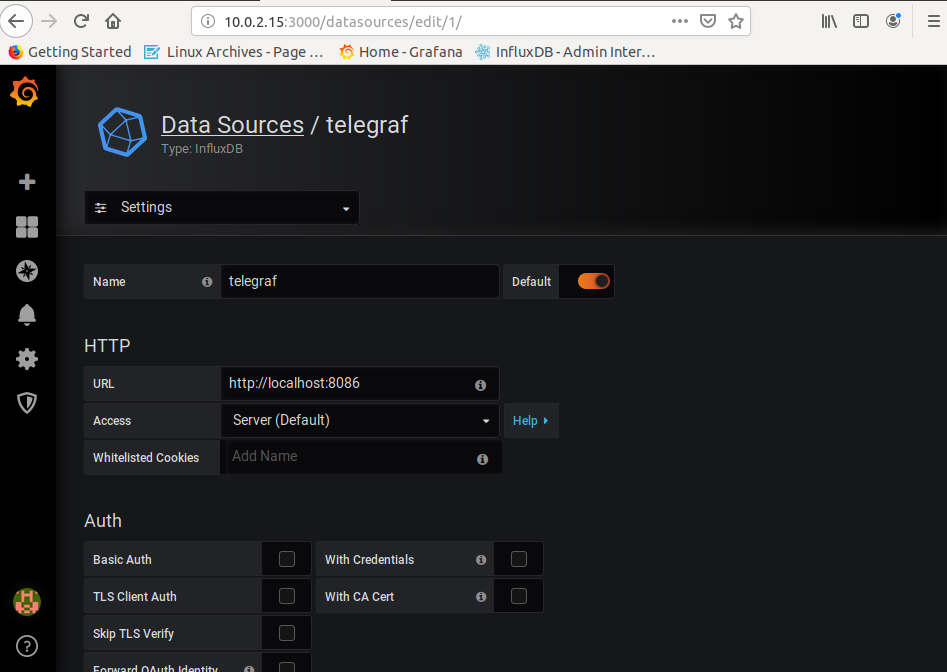 Name : telegraf, URL --> http://localhost:8086 접속